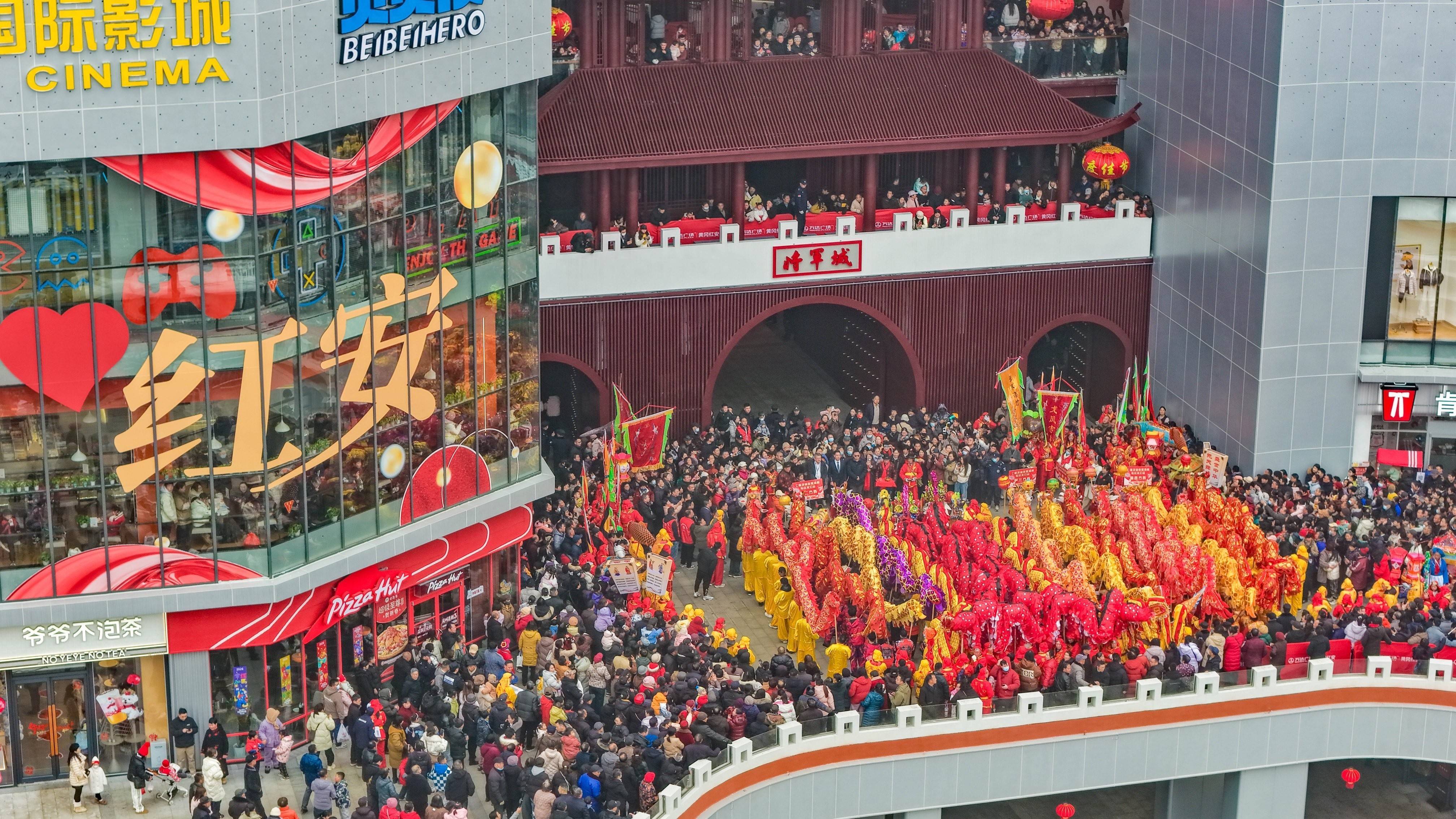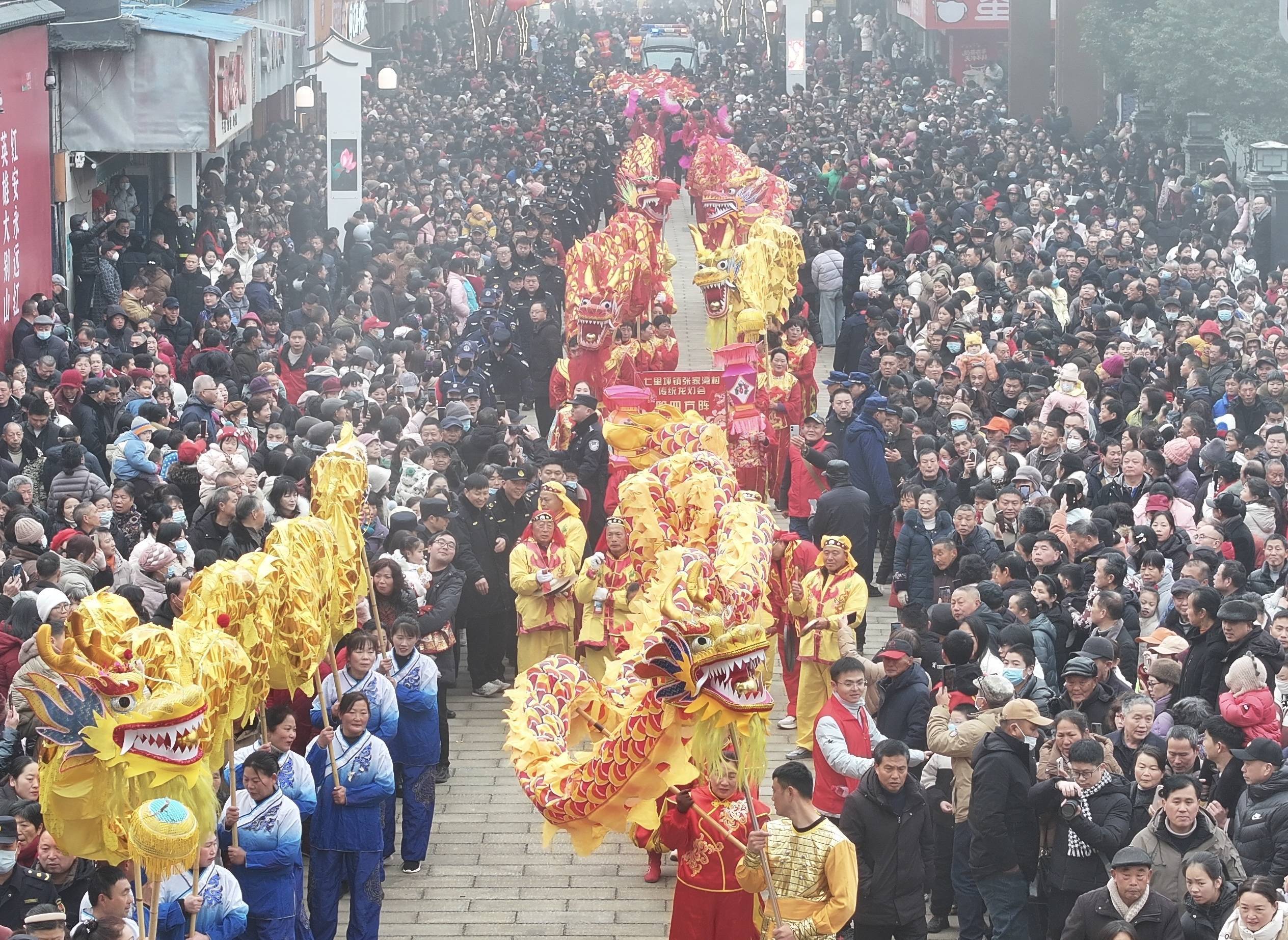 龙灯队伍一路穿行在市区最繁华的街道,将新春的喜庆与吉祥祝福送到千家万户,也让荡腔锣鼓、采莲船等非遗民俗在街头巷尾焕发出蓬勃生机。