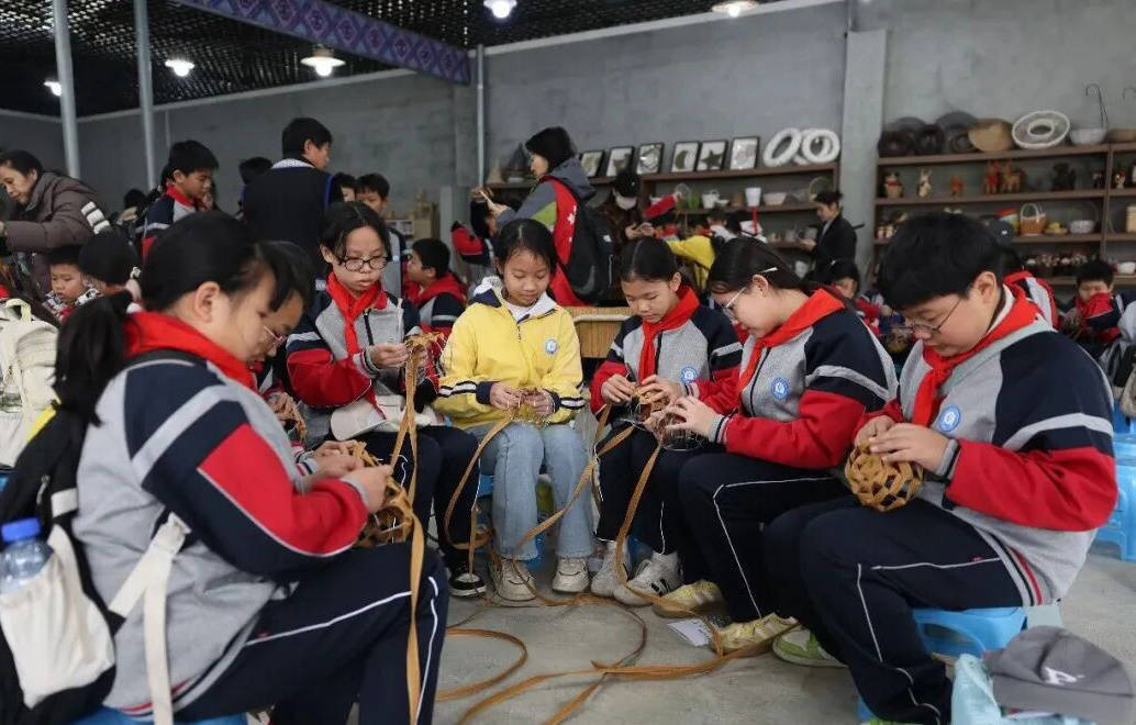 “大家跟着我,先从顶部做起,把藤按照框架绕过去,一层一层来。”在藤编工艺传承教学培训基地,韦西兰耐心地指导孩子们制作藤编产品。一个上午过去,绣球、五角星等造型的作品就在孩子们手中诞生了。目前,地苏镇共设立5个藤编工艺传承教学培训基地、3个中小学社会实践教育基地,每年组织培训900多人次。